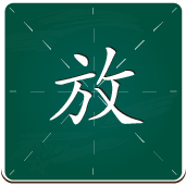 放:凡右下方有捺画之字,诸横扛肩。点横分离,短横扛肩,先横折钩,再写撇。横折钩横朝右下方走一定要短,撇的最末端不可超过横折钩的末端。点、撇的起笔处、横折钩的起笔处,横折钩的起钩处在一条竖线上。反文旁撇要直,末端指向横折钩的折笔处。横在撇的末端靠上一点起笔扛肩写,撇笔在横的起笔靠右一点起笔先走直,末端指向横折钩的起笔处偏上一点,最后捺笔起笔在撇的末端,收笔走直出捺脚。